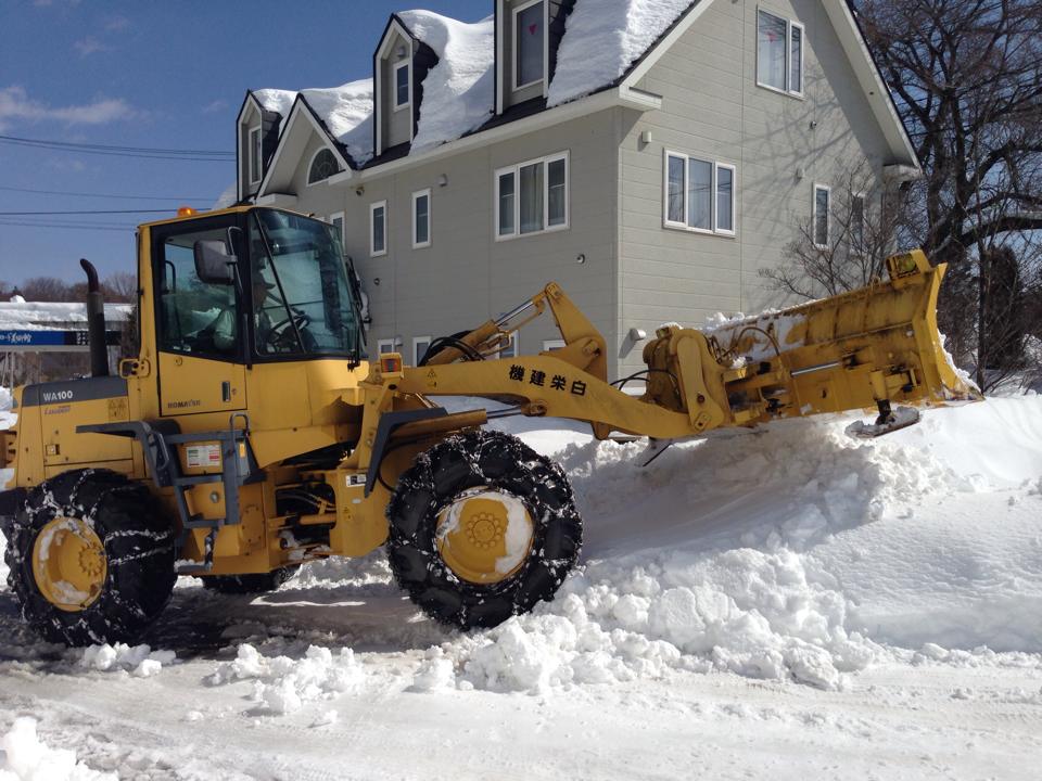 今日、実行委員の家のそばにようやく除雪車がきました。
