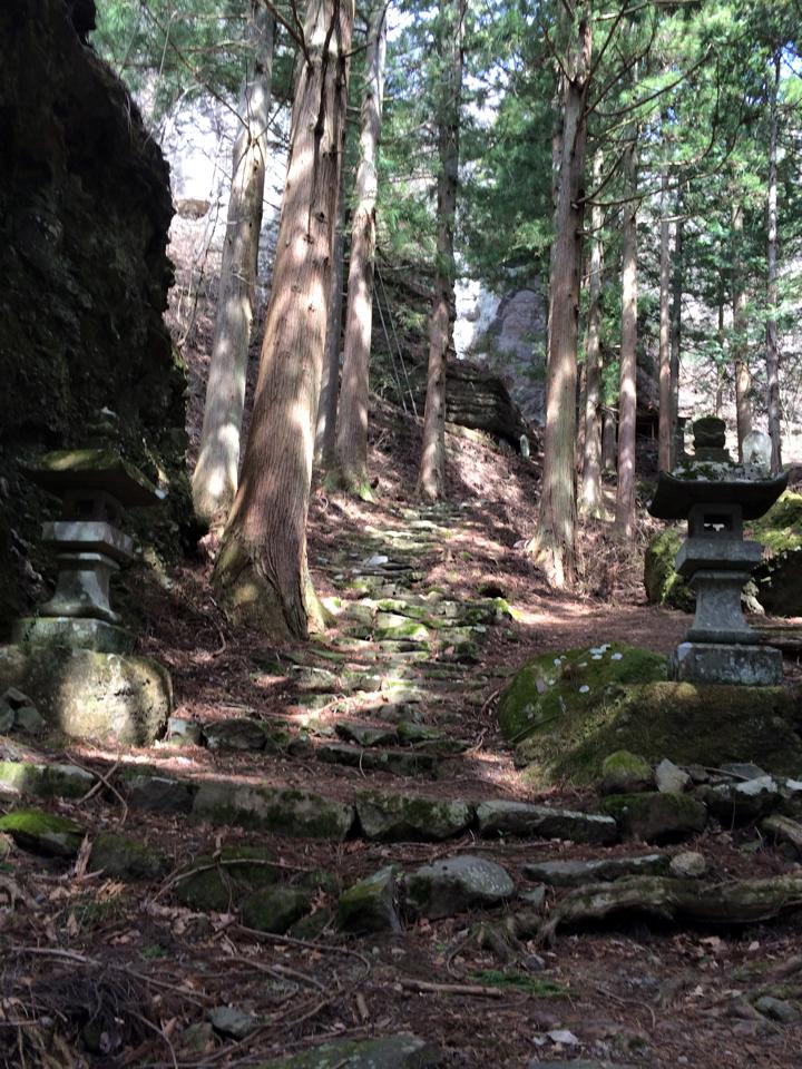 ちょっと足場がわるかったり、枯葉で滑りやすいので、気をつけて慎重に降りていきます。