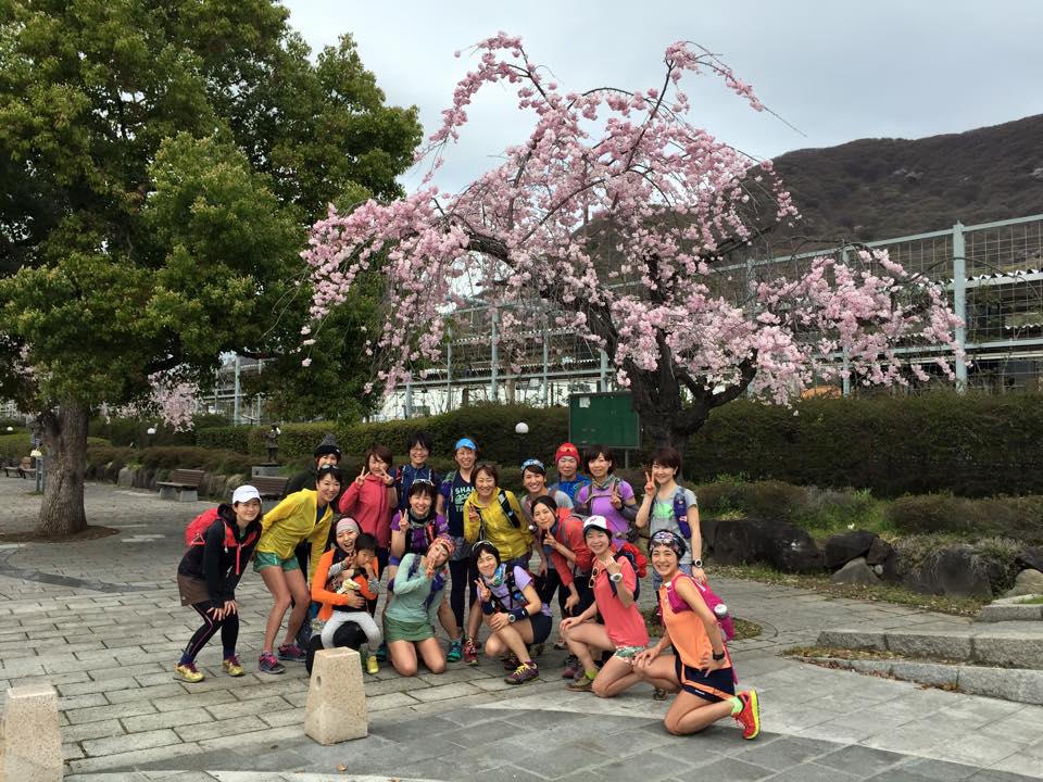 櫻満開の山梨県石和温泉駅に女性19名が大集合。