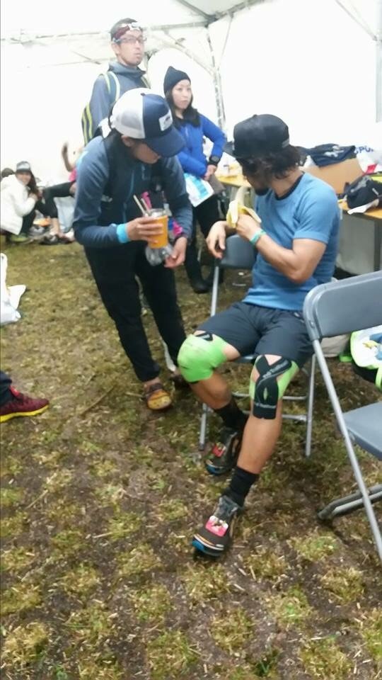 桑原さんやチャンプ、STSの千大くんといった、エイドスタッフの仲間と話してる時は本当に楽しそうで、これまでのコースの話や、これからのペースのことなど、すごい楽しそうに話していて、人からパワーをもらうってこういうことなんだなーと、改めて感じた時でした。