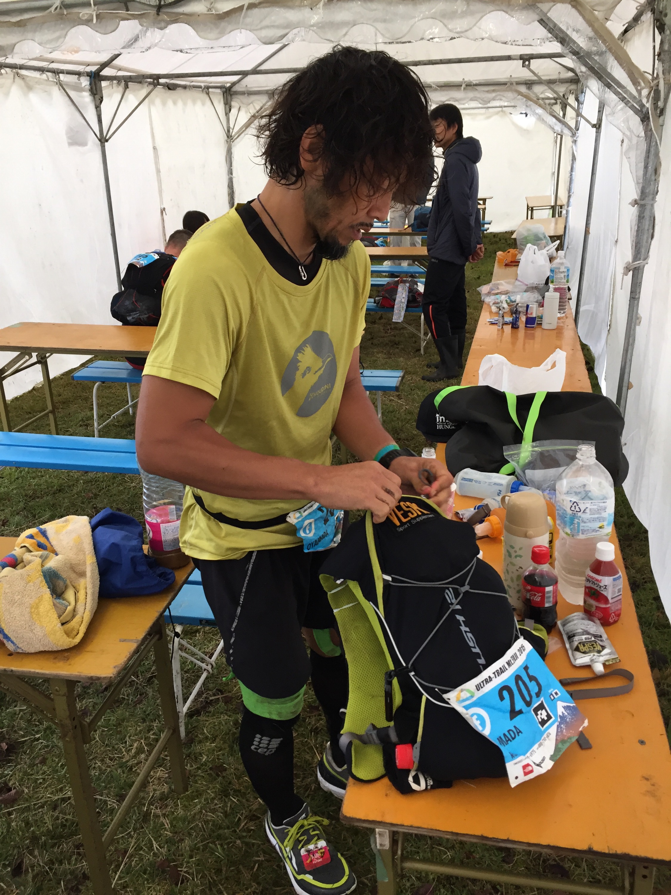 磯村さんは国内外のいろんなレースに出ている方なので、UTMFのサポートもお手の物という感じで、落ち着いて準備をしています。