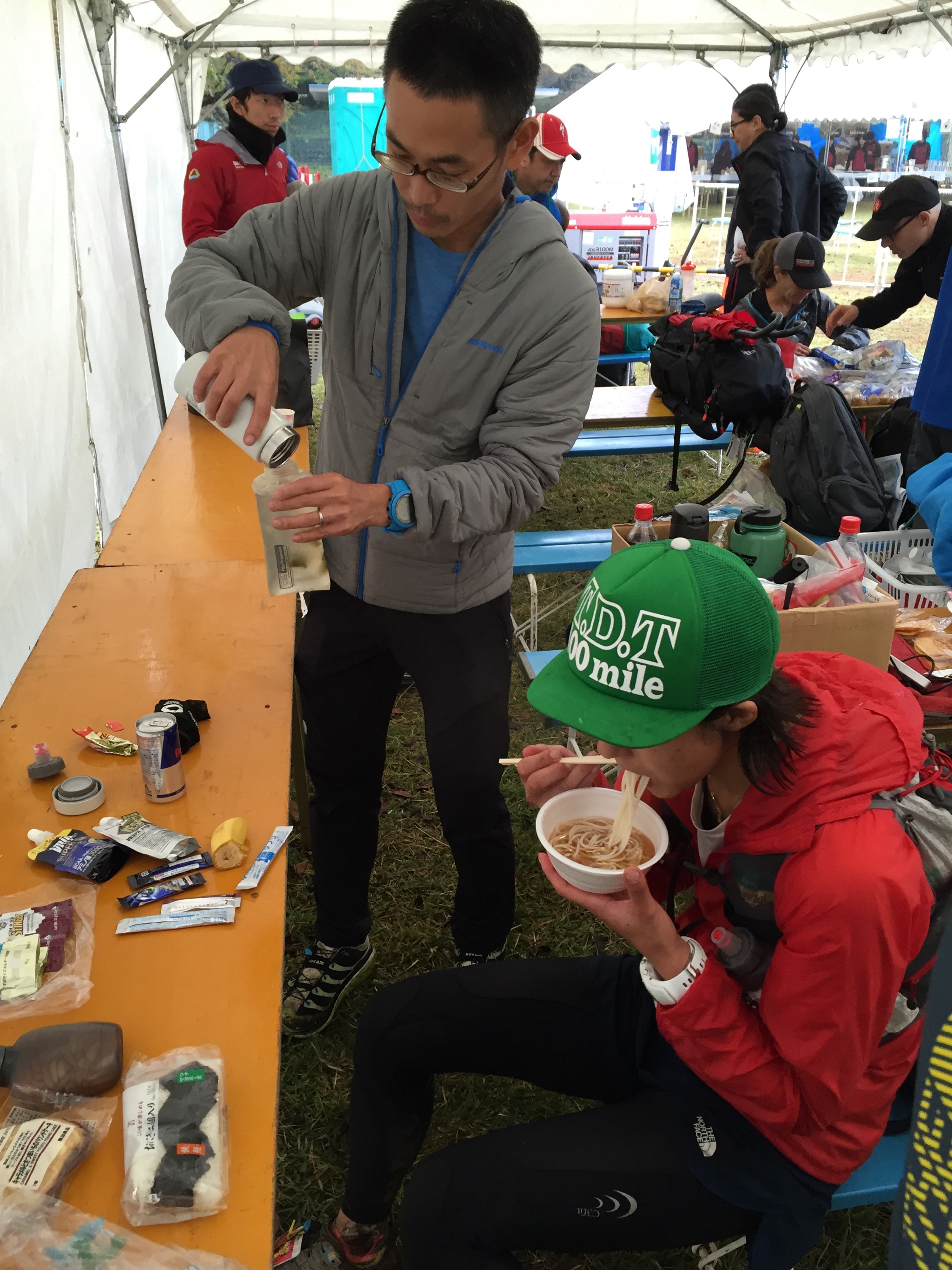 私もまだ朝ご飯にありつけていず、というよりも、サポーターもご飯をしっかり食べているような時間はなく、移動中にちょこっとパンやおにぎりを食べるか、サポートエリアで選手の食べ残しを食べるといったかんじで、しっかりご飯を食べている時間が無いのです。