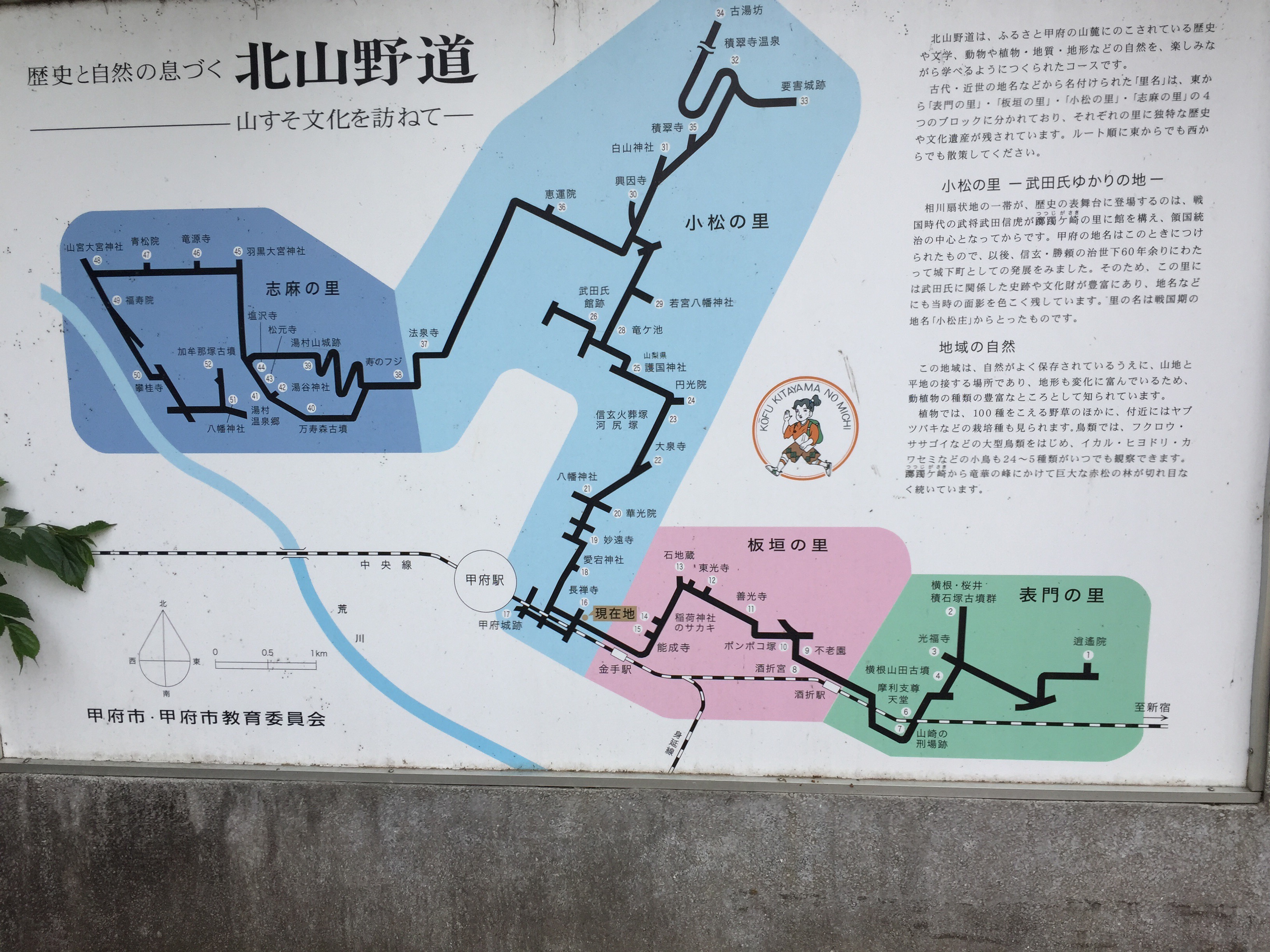 だいぶ昔に作った看板ですが、甲府駅の北側のエリアの神社や史跡に番号がふってあり、