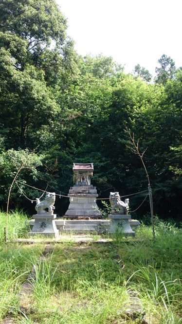 狛犬さんは新しめ、祠の台座もだいぶ新しめ(平成のもの)