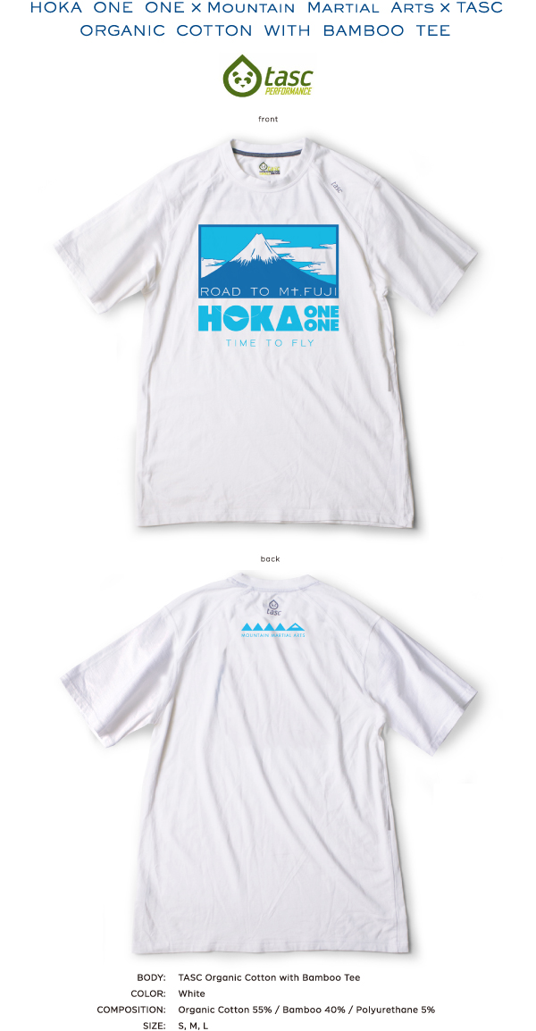 共にオリジナリティを大切にする両ブランドが、トレイルシーンを盛り上げていきたいという気持ちで意気投合。世界中から日本のトレイルに集まるランナーに向けて、浮世絵風にアレンジした名峰富士にHOKA ONE ONEのロゴを組み合わせたモダンなグラフィックをプリントしたTシャツを数量限定でリリースいたします。HOKA ONE ONEのブランドカラーである白と青の組み合わせはシューズとのコーディネートも楽しめ、日本人ランナーだけではなく、世界中のランナーに愛用していただきたいアイテムです。