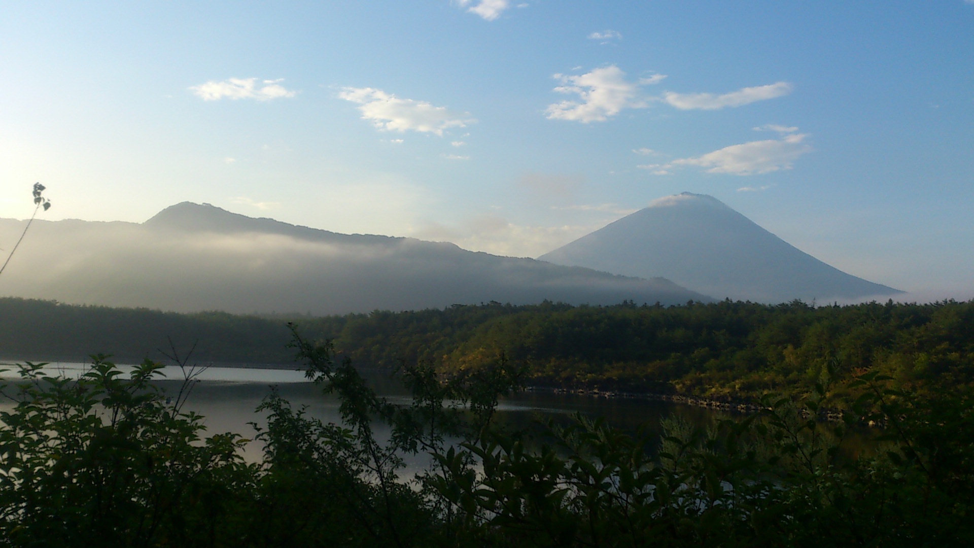 明け方~早朝の湖や樹海の景色は素晴らしく、最高に気持ち良いコースでした。