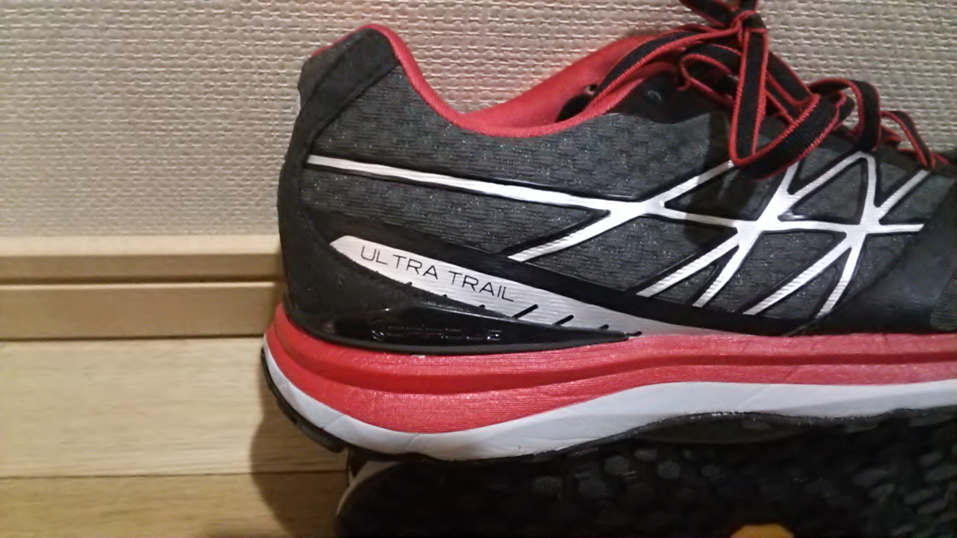 また、踵側にはULTRA TRAILとロゴが入り、個人的にはロングレースの相棒みたいな感じが気持ちを高ぶらせてくれるようで気に入っています。。