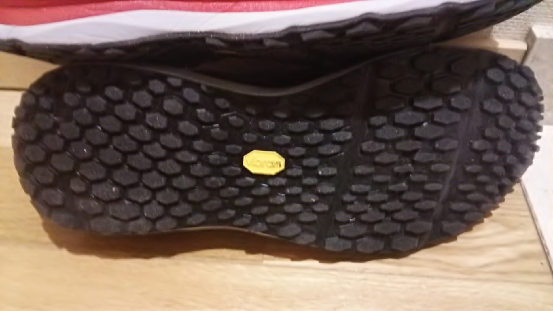 大きく違うのはアウトソールにビブラムが採用されたこと!しかも変形六角形のデコボコしたブロックがびっしりとあり、メチャクチャグリップが良さそうです!