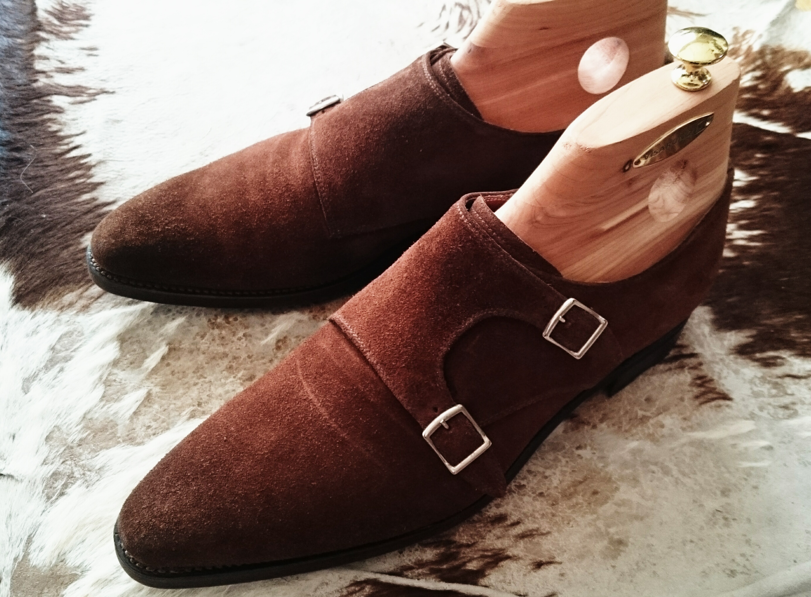 今回は10年ちょい履いているダブルモンクのスエードシューズです。