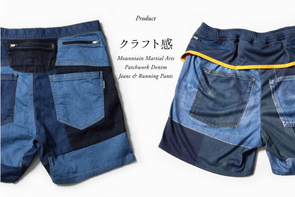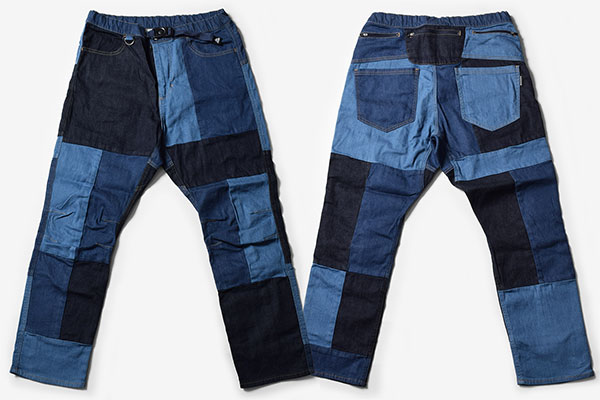 履きやすさとデザインを両立したストレッチデニムジーンズと、Mountain Martial Artsを代表するアイテムであるデニムランパンツ。今シーズンは、共にクラフト感あふれるパッチワークデザインで登場。