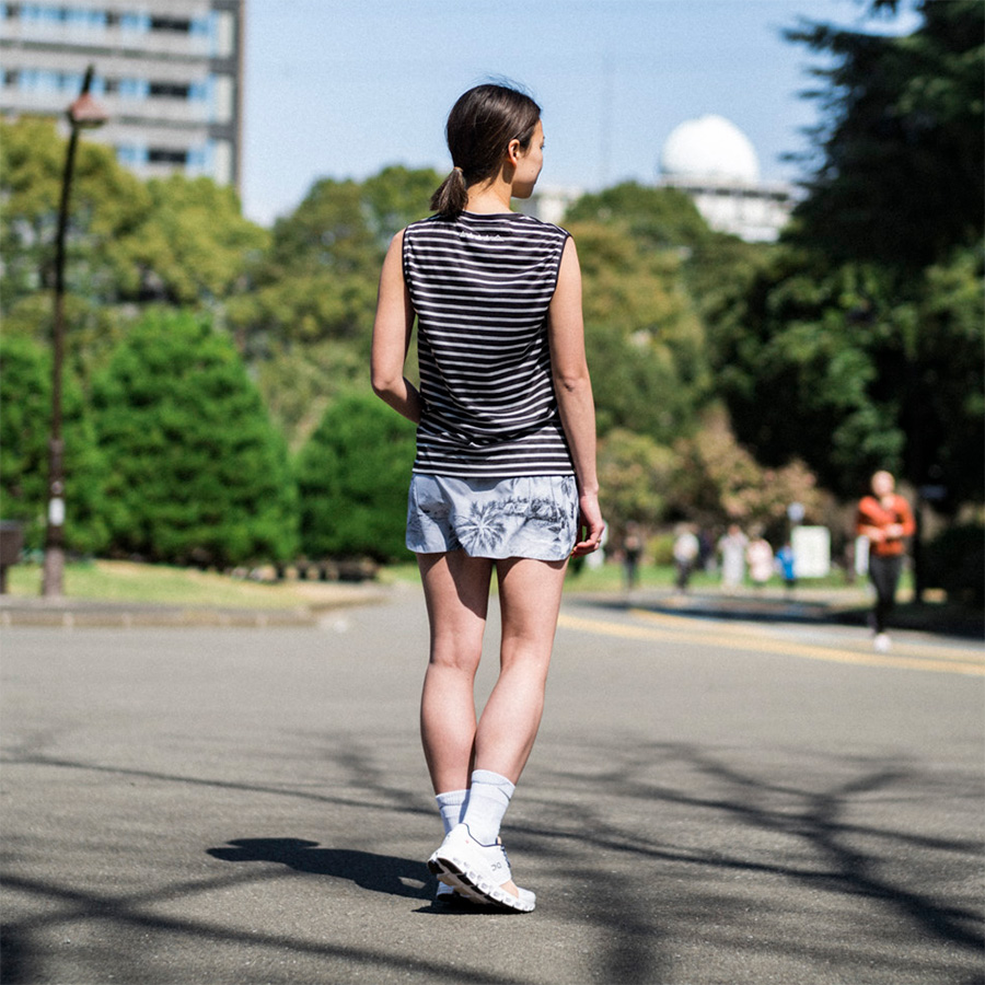 ランニングを始めた時、「デイリーウェアでは夏の定番であるボーダーTシャツが、ランニングTシャツにはない」と思った。なければ作ればいい。そして作るなら、なるべく普段も着られるほうがいい。