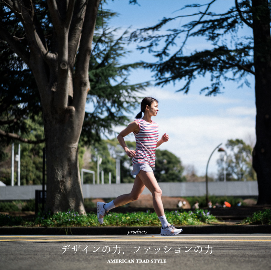 機能を高めるためのデザイン。気持ちを高揚させるためのデザイン。機能とデザイン性を併せ持ったウェアは、同じようにランニングの時に心に響くはず。