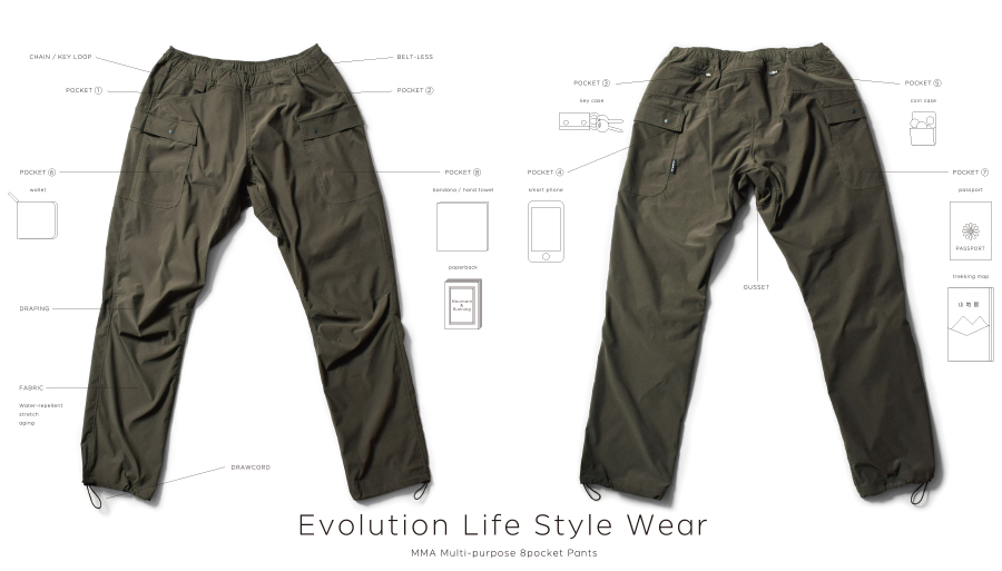 デスクワーク、車や電車、飛行機での移動、トレッキング時の休憩。ぼくらのライフスタイルに、もうヒップポケットは必要ないのかもしれない。現代人のライフスタイルに合わせてマルチパーパスに使える新型パンツ/ショーツ。