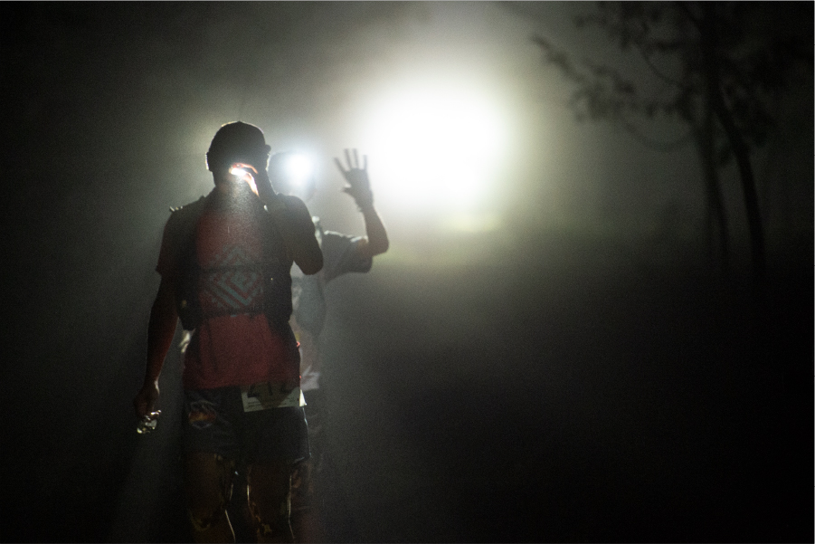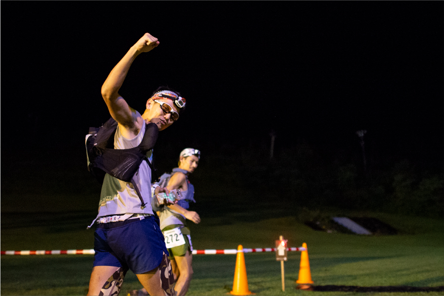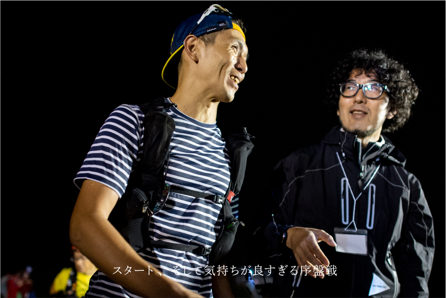 とにかくスタートしたからの夜区間は気持ちよかった。スピードレースのような気負いもなく、呼吸が乱れることもない。前半の難所、斑尾山もいつの間にかピークハントし、第一関門の「レストランバンフ」では渋井さんに「かなりいい感じっす」とガッチリ握手。