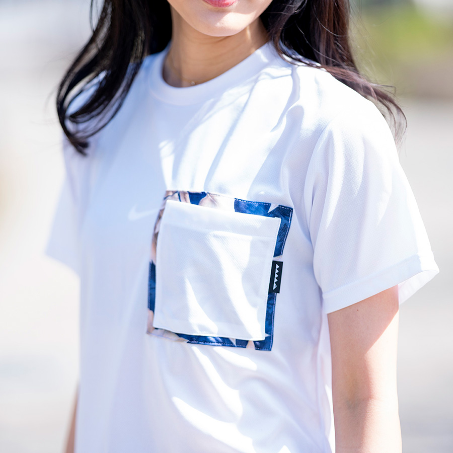 日常でも着やすいシンプルデザインのTシャツにMMAらしさをプラス。走りたくなったらすぐに走り出せる吸水速乾性・UVカット・ストレッチ性を備えたポケットTシャツ。