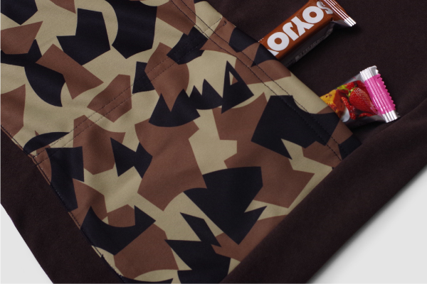 そして前後に付けられたポケットは既存のカモフラージュ生地を使っているわけではなく、クールマックス素材にMMAオリジナルのカモフラージュ柄を昇華転写プリントしている。通気性を保ちながら発色のよい昇華転写プリントは、デザインの自由度が高く機能的である。MMAが持つオリジナリティと機能面を含めたプロダクトへの理解がこうした仕様を可能にする。