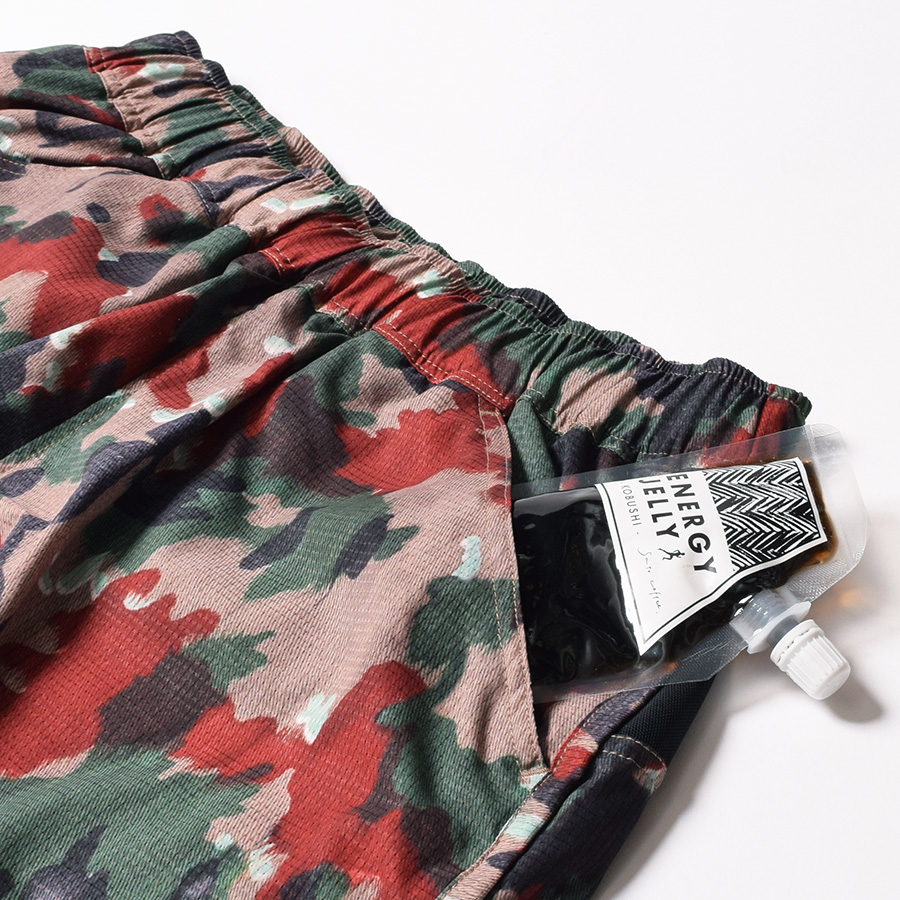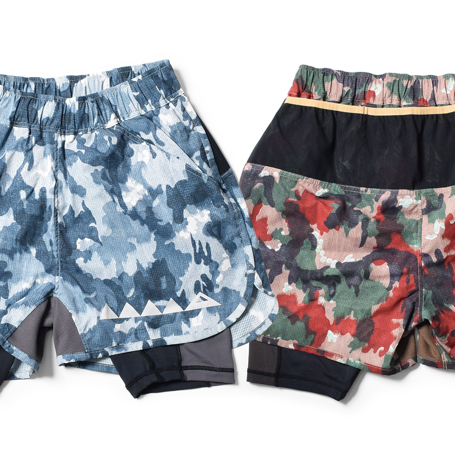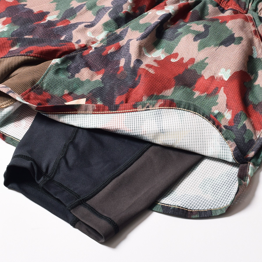今季は寒い時期のランニングにも対応するミドル丈のライナーを装備した「Plus」。ボディは通風孔があり通気性の高い東レの撥水素材「Dot Air®︎」を使用。素材の機能を損なわない昇華転写プリントで山岳部隊が使用していた特徴的なAlpen Camo(アルペンカモ)柄を表現している。