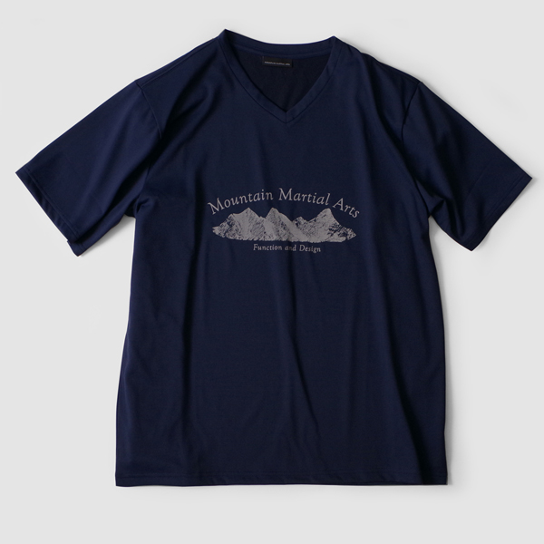 MMAの特徴でもあるスタイリッシュなグラフィックで、スポーツウェアが持つスポーティーなイメージとは一線を画す落ち着いたデザインのVネックTシャツです。