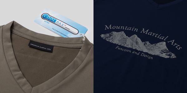 ボディはMMAオリジナルの日本製ボディで、素材には吸水速乾機能を備えたクールマックスを使用。スポーツウェアでよくみる光沢感のある質感ではなく、しっとりとした肌触りが上質さを感じさせます。トレイルランニングやランニングの他、トレッキングやヨガなどのスポーツ、そして普段着にと幅広くお使いいただけます。