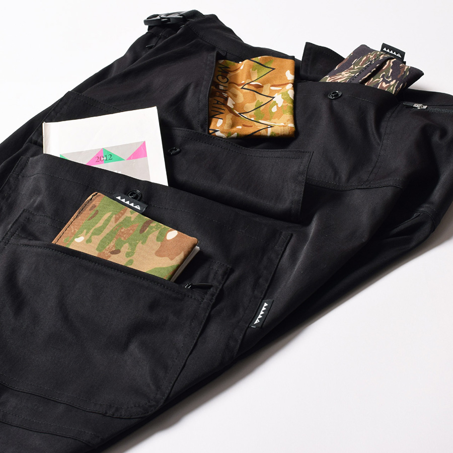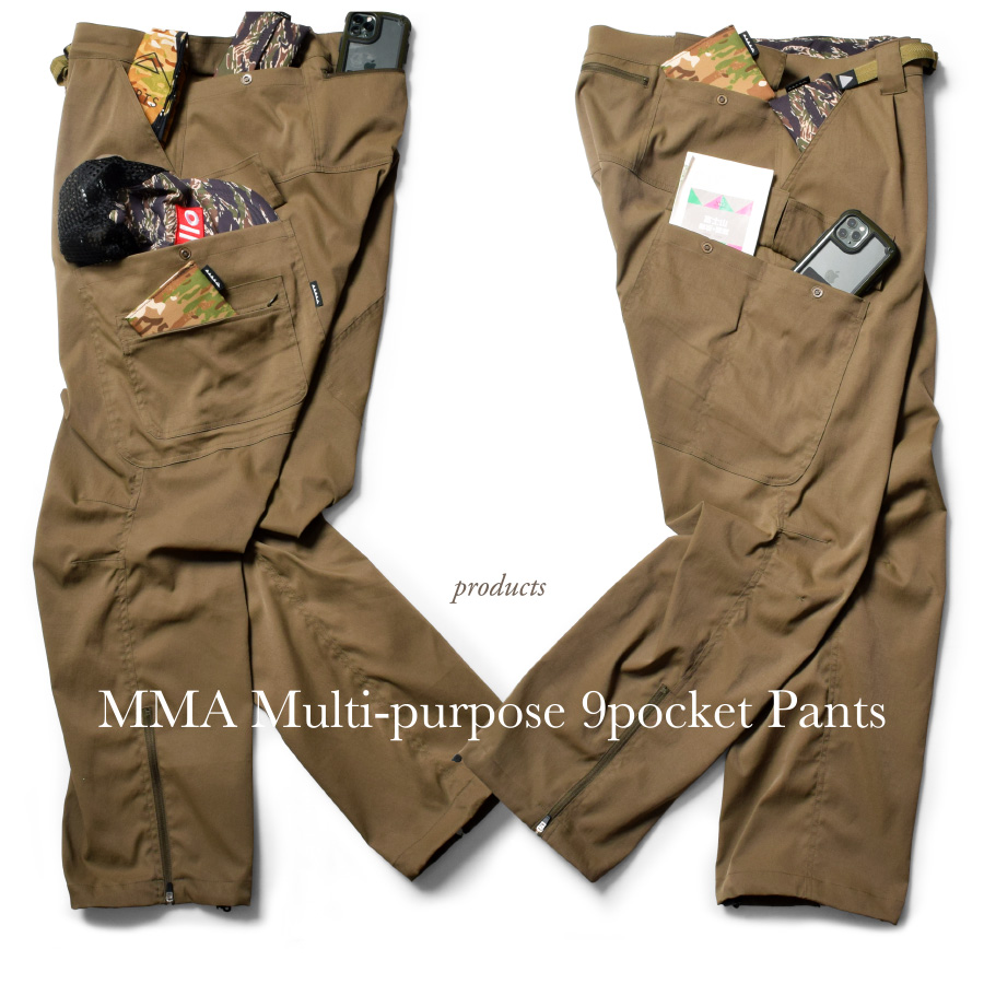 2018年からMOUNTAIN MARTIAL ARTSが提案している現代のライフスタイルを快適に過ごすための進化系マルチパーパスウェア。デスクワーク、車や電車、飛行機での移動、そして家で過ごすひととき。9つのポケットを装備し、座る時間や移動の際の機能と快適さを追求した高い収納力を誇る手ブラパンツ。