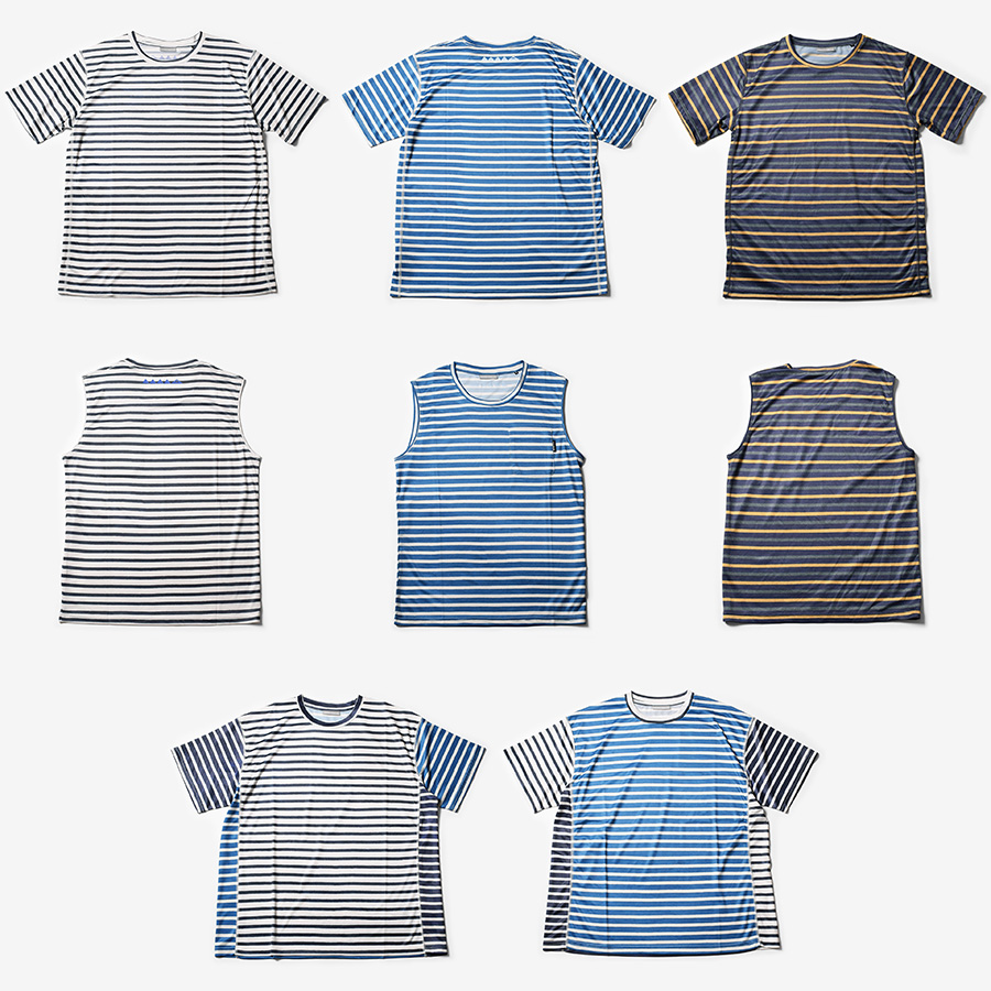 定番の脇マチのTシャツ、ぽけっとスリーブレス、クレイジーパターンのビッグシルエットTと3型で展開。幅広いシーンで使えるボーダーシリーズは、色、形、デザイン、好みで使い分けて欲しい。