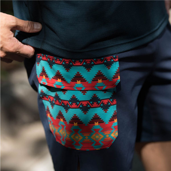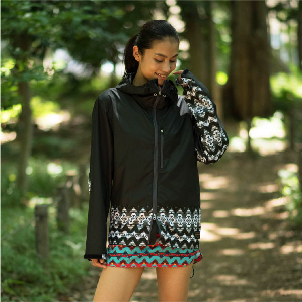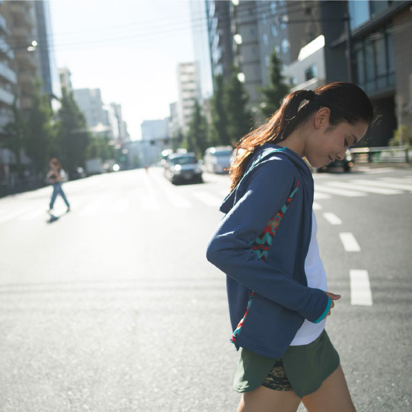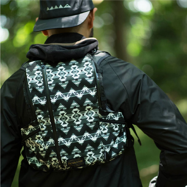セレクトした柄は「Mountain Majesty」。1920-1940年代のアメリカ南西部ナバホ族のシンボルである、山、棚田、ダイヤモンドからインスピレーションを受けている。その「Mountain Majesty」にMMAマークを組み合わせ、カラーをアレンジ。Tシャツ、パンツ、ウィンドシェル、ランニングバックパックなど、デイリーとアクティビティをシームレスに繋ぐアイテムに落とし込み、オリジナリティ溢れるコレクションを生み出した。