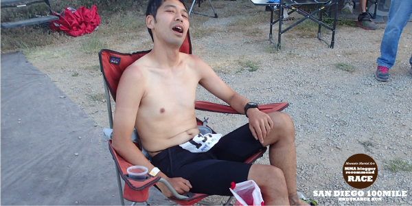 残り20km地点のエイドにはかなりのハイペースで到着。30時間を切るペースになった。ここでSweetwaterのエイドスタッフと再会する。