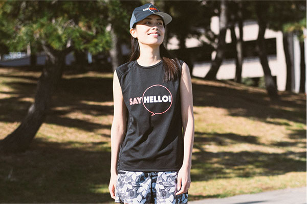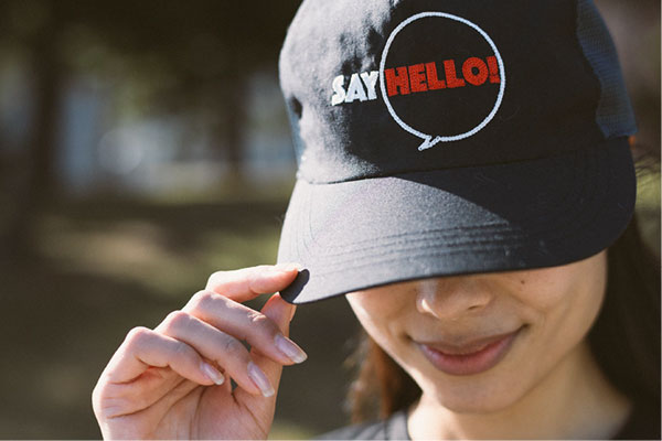 「SAY HELLO!」というシンプルなメッセージをプリントしたTシャツとキャップには、そうした気持ちを込めている。