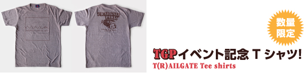 T(R)AILGATE PARTY開催を記念して、イベントTシャツを数量販売致します。フロントにはMMAロゴ、バックにはTGPマーク。イラストでさらっと主催者各社のロゴも入っている貴重品!