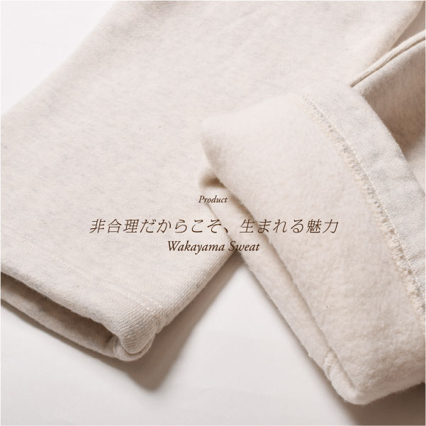 和歌山はかつて日本一のニット産業地として栄えていた。その当時、つまり今では旧式となった編み機で編んだスウェットが数年前から注目を浴びている。旧式の編み機は現代の高速の丸編み機に比べると生産効率が低く、大量生産には向いていない。しかし、糸に負担をかけずにゆっくりと編むことで独特の風合いが生まれる。