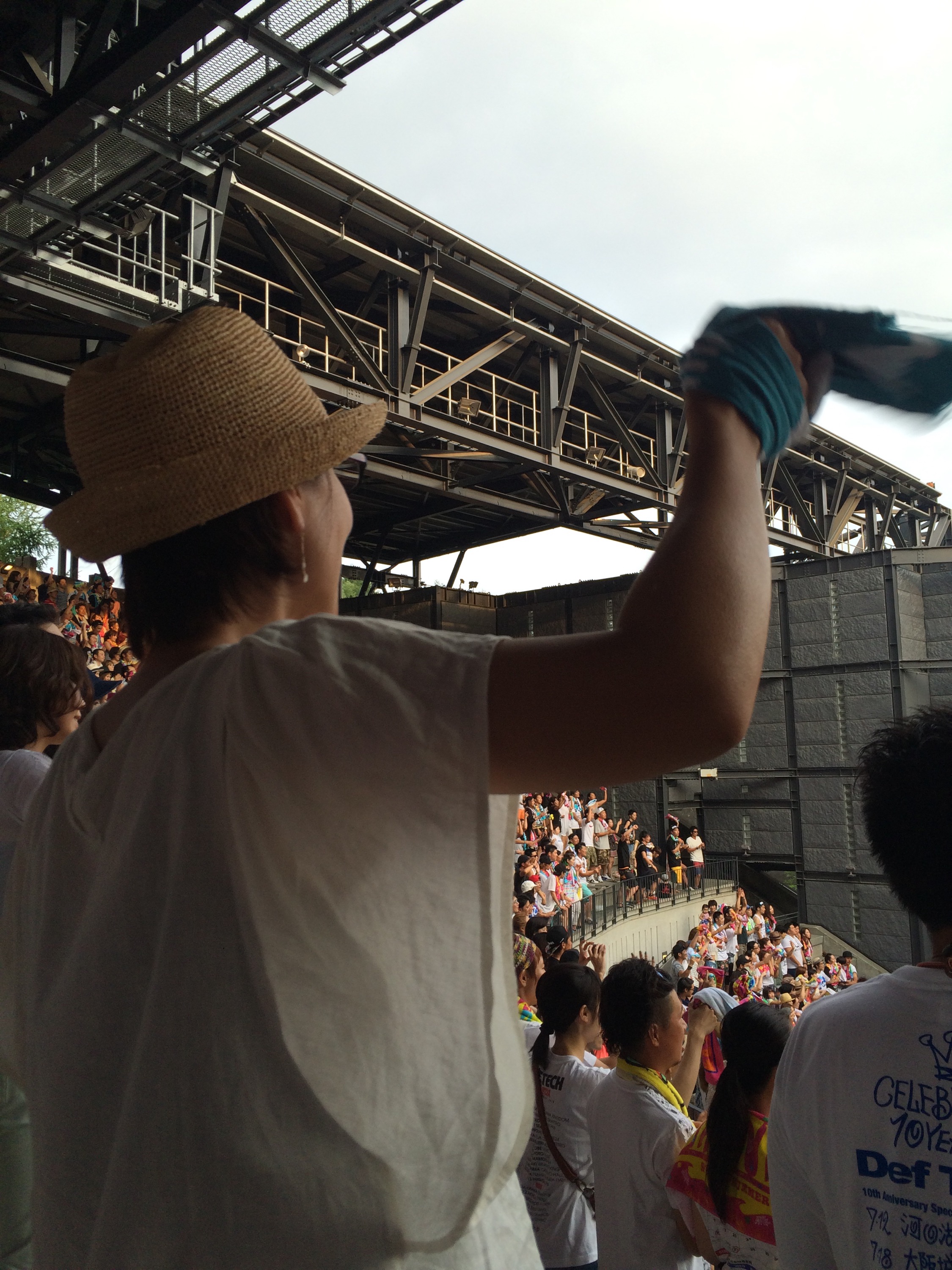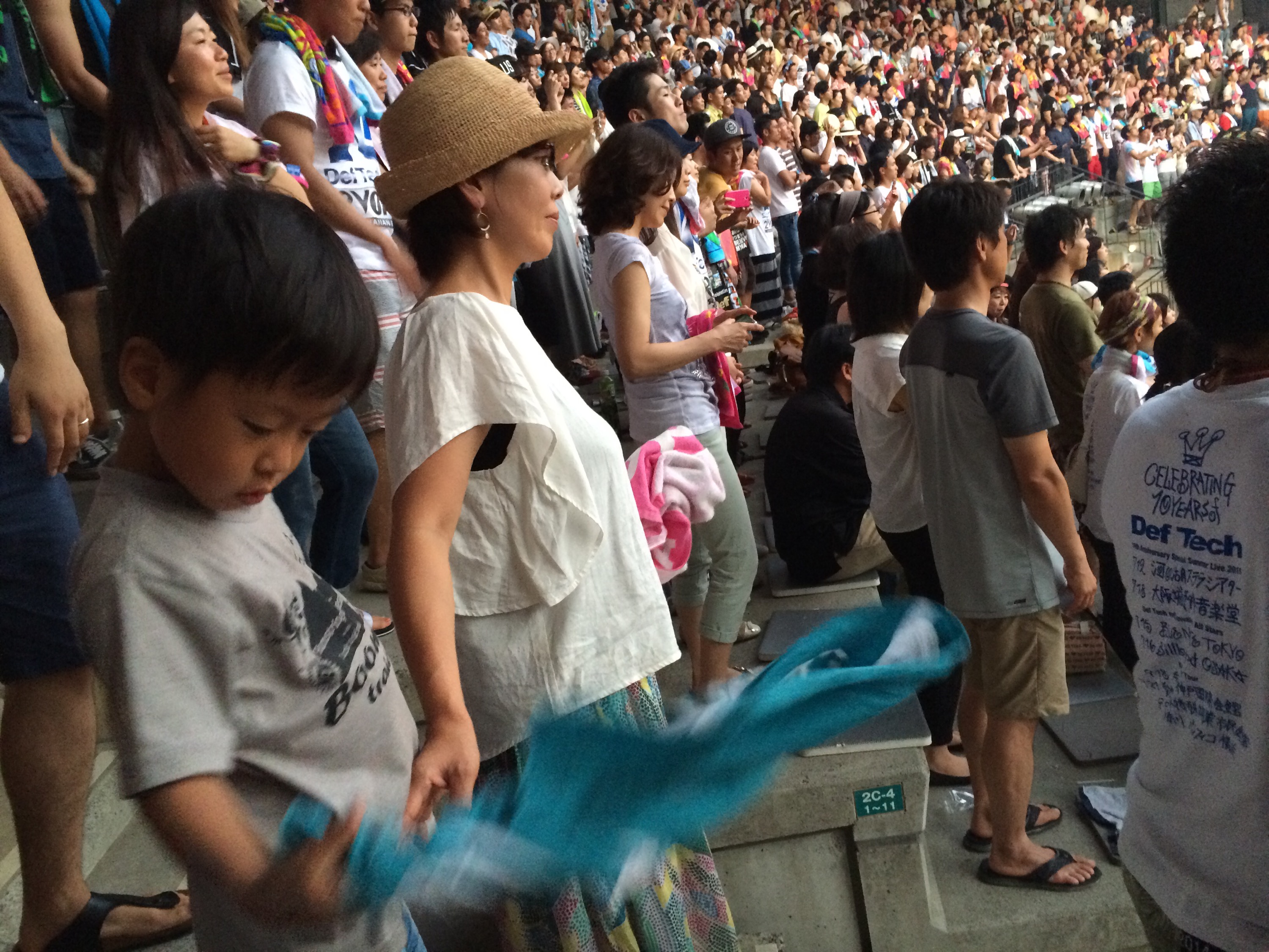 妻は公式タオルを購入せず、非公式のおつかれ山手ぬぐいをブンブン振り回す。