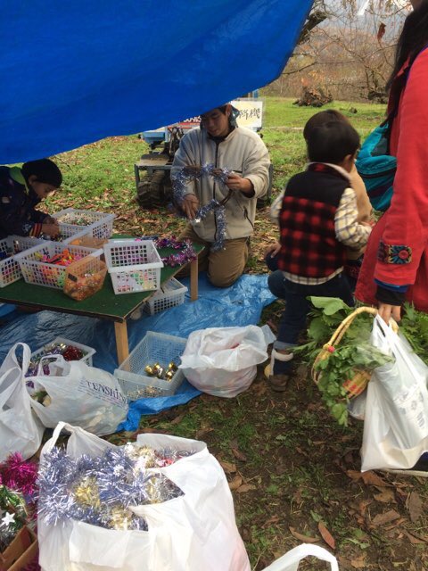 そしてボクら小山田家は、、、大根5本で300円を購入後、手作りリース製作へ。