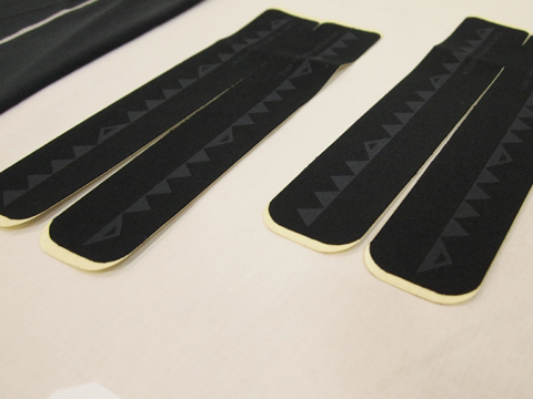 そこでないかプラスしようと思っていた時に思いついたのがネイティブ柄。最近カジュアルウェアでもよく目にするし、山を舞台とするトレランだし、しかもちょうどギザギザ山マークがあるから、それを使ってオリジナルネイティブ柄を作ってみた。こういう時にデザイナーを兼ねていると便利(デザイン代タダ)。