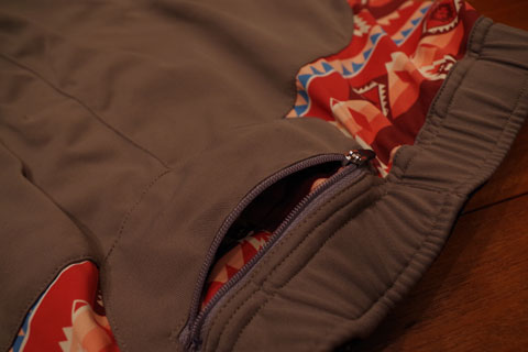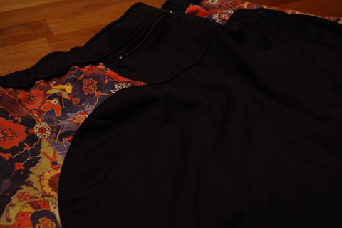 背中部分にはポケットを配置。前の左右にも普通にポケットをつけました。ポケット内の柄がオシャレ!