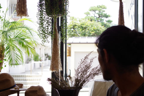 134号から少し入った住宅街の一角にあり、お店の前からは海が見える。周りの家々の庭にはサーフボードが置いてあり、ぼくらのイメージする鎌倉を感じるエリア。