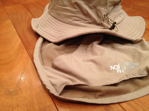 こちらはTHE NORTH FACEのサンシールドハット。その名の通り、首もとを陽射しからガードするサンシールド付き。