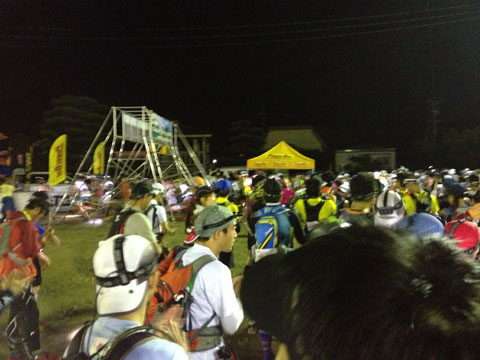 続々とスタート地点に集まってくるトレイルランナーたち。すぽるちば、鳥羽ちゃん、フジヤマユナイテッド、etc.。深夜12時近く、遠い長野の地で会う不思議。