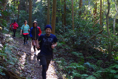 ルートはエディが設定。時期的、さらに土曜日なので混雑を避ける意味も込めて「よく知ってるな〜」というマイナールートを選択した模様。一般の参加者は数名だったけど、みなさんトレイルラン暦は1年以下とのことで、のんびりゆるめかと思いきや。