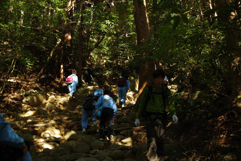学生が遠足で登っている。みんなでわーわー言いながら、男の子は女の子にいいところを見せたいのか、頑張ってる風。そういう感じも懐かしい。何故なら、今は山で女性陣にいいところを見せるどころか、ぶっちぎられる存在なのでw