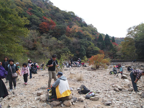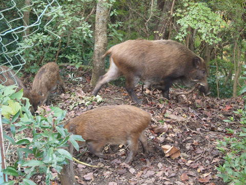 菊水山からしばらく下り、市ケ原という場所に到着。ここはいわゆるキャンプ場のようで、大会参加者以外の方も多い。そしてイノシシさんも。