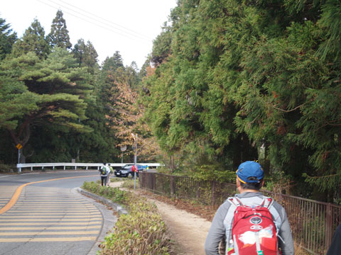 みんなの到着を待って、いよいよ後半下り区間スタート。でもまだまだ車道。のんびりと進む。しばらく行くと最後のチェックポイントがあった。807とチェックシートに書かれたので、807番目なのだろう。