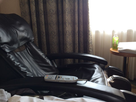 三宮に戻り、ホテルにチェックインしたら(混んでいて同じホテルに連泊できなかった)、なんと部屋にマッサージチェアが!