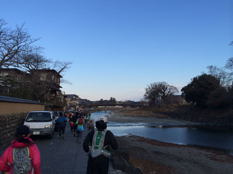 朝8時30分にスタート!最初はトラックを一周する。その後おはらい町へ!