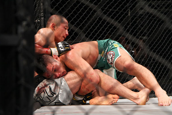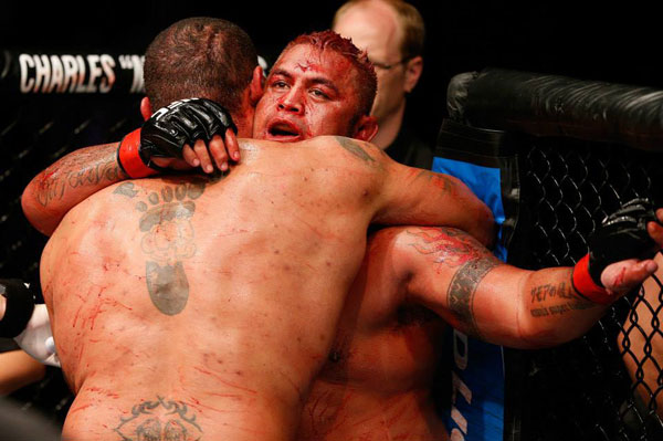 その二人のモンスターが5R闘った試合は、死力を尽くしたまさに死闘。両者流血というど迫力ファイトの末、UFCには珍しいドロー判定だった。
