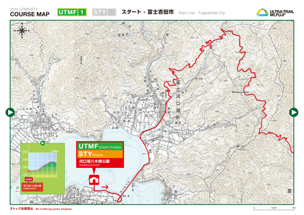 トレイルラン系の仕事でぼくに声をかけていただくクライアント様は「渋井さんはトレイルラン好きだから、その視点で」という感じのご要望をいただくことが多いのだが、今回も自分がランナーになったつもりでこつこつと作った(というかSTYに出るし)。地図の通し番号、エイドになにがあるか一目で見やすいように、高低図を入れて標高がわかるように、そして全体の見栄えなど。