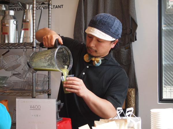 長谷のモンテマーレさん。今回は名物の美味しいスムージーを持ってきてくれました。野菜と果物の美味しさが凝縮されたグリーンスムージーは絶品!トレイルランイベントに参加されたランナーのみなさまも美味しくいただいていました。