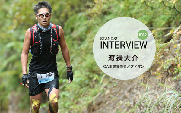 Cyber Agentの風雲児にして一部で話題のビジネスアスリートチーム「DOUBLE SURVIVOR」部長の渡邊大介さん。「やり過ぎ」「変態」「エクストリーム」「肉食系」で知られる超絶チームのロングトレイルラン乱入は展開が予想できない。まさにイデオロギー対決!