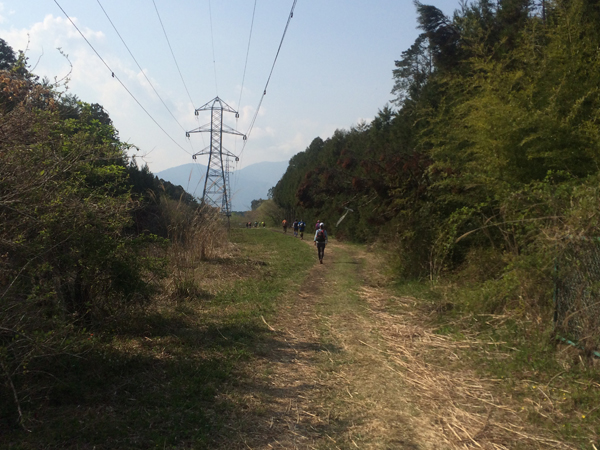 第一関門(A8)の西富士までは林道とロード、送電線下の野原のゆるい下り基調(27k)。送電線下は若干の上り下りがあるものの、トレイルランという感じではない(しかし実は意外に大切なパート)。