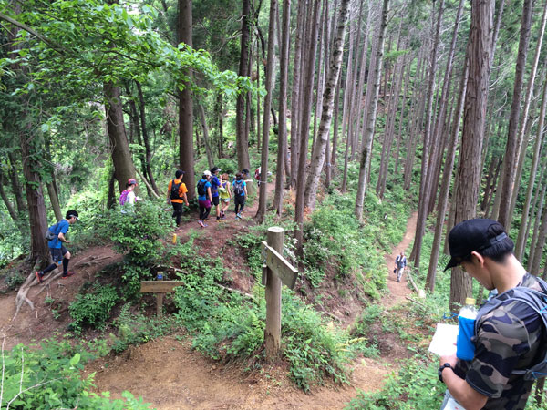 その後みんなで地図をみながら実践。南高尾を徘徊する。慣れたところで森勝さんが指示したルートをコンパスと地図を頼りに各自進むトレイルランコーナー。