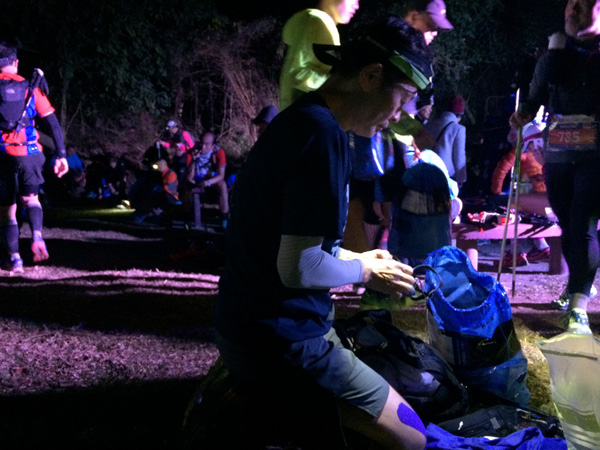 とはいえ、まだ急登というような感じのところはなく、順調に第五関門「Kei Ling Ha」(52k)に到着。周りはすっかり暗くなっていた。